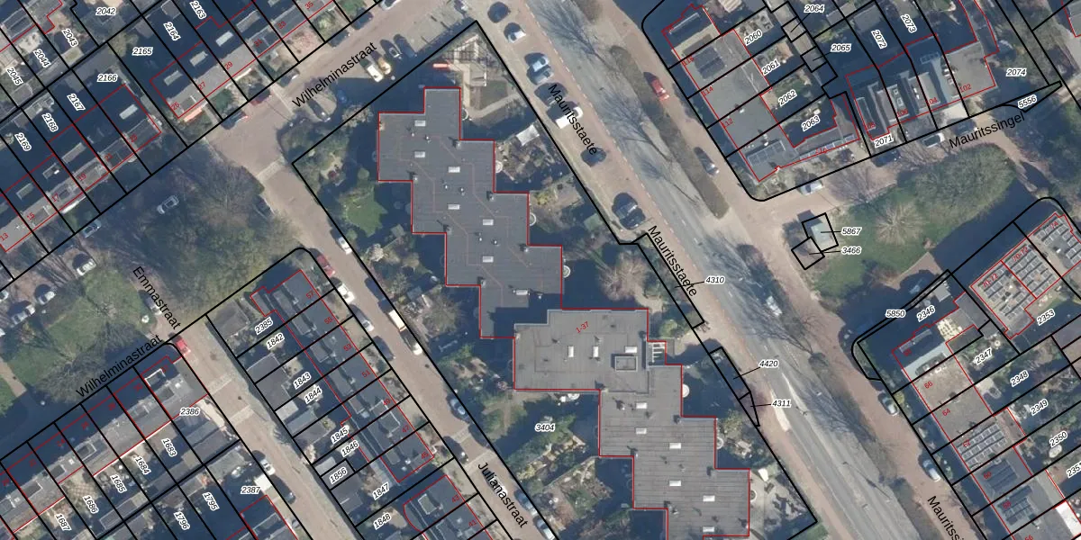 Het perceel waarop Mauritsstaete 21 staat heeft een oppervlakte van 4628 m². Dit is een zeer groot perceel. De perceeloppervlakte wordt geregistreerd door het Kadaster. Gedetailleerde informatie over de maten van dit perceel kunt u vinden in het rapport Kadastrale kaart met maatvoering van Mauritsstaete 21.