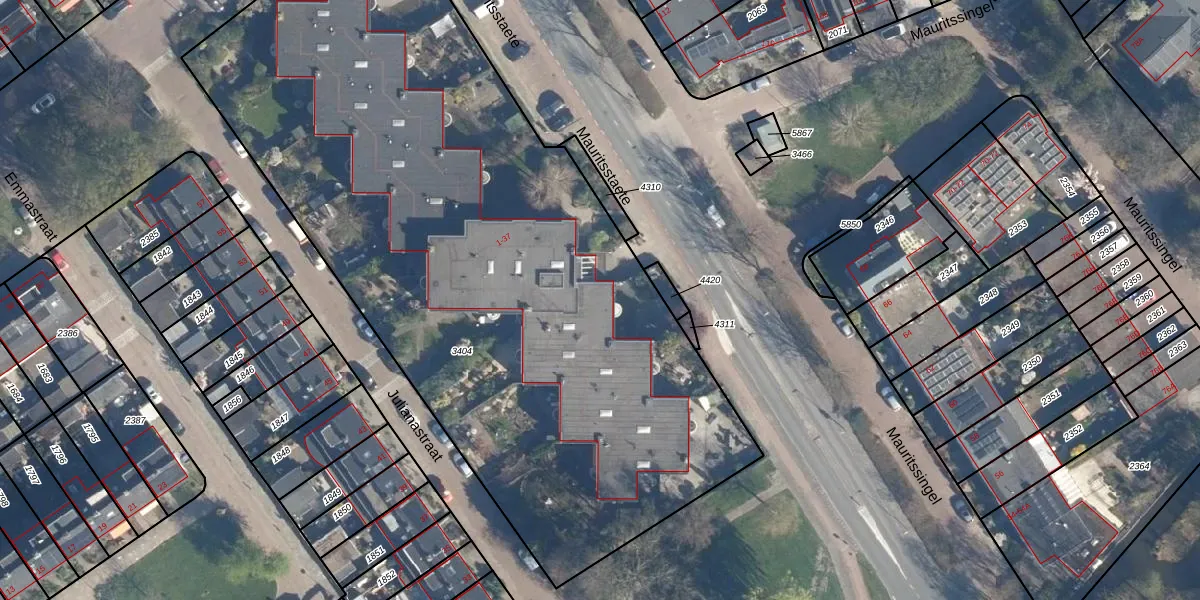 Het perceel waarop Mauritsstaete 6 staat heeft een oppervlakte van 4628 m². Dit is een zeer groot perceel. De perceeloppervlakte wordt geregistreerd door het Kadaster. Gedetailleerde informatie over de maten van dit perceel kunt u vinden in het rapport Kadastrale kaart met maatvoering van Mauritsstaete 6.