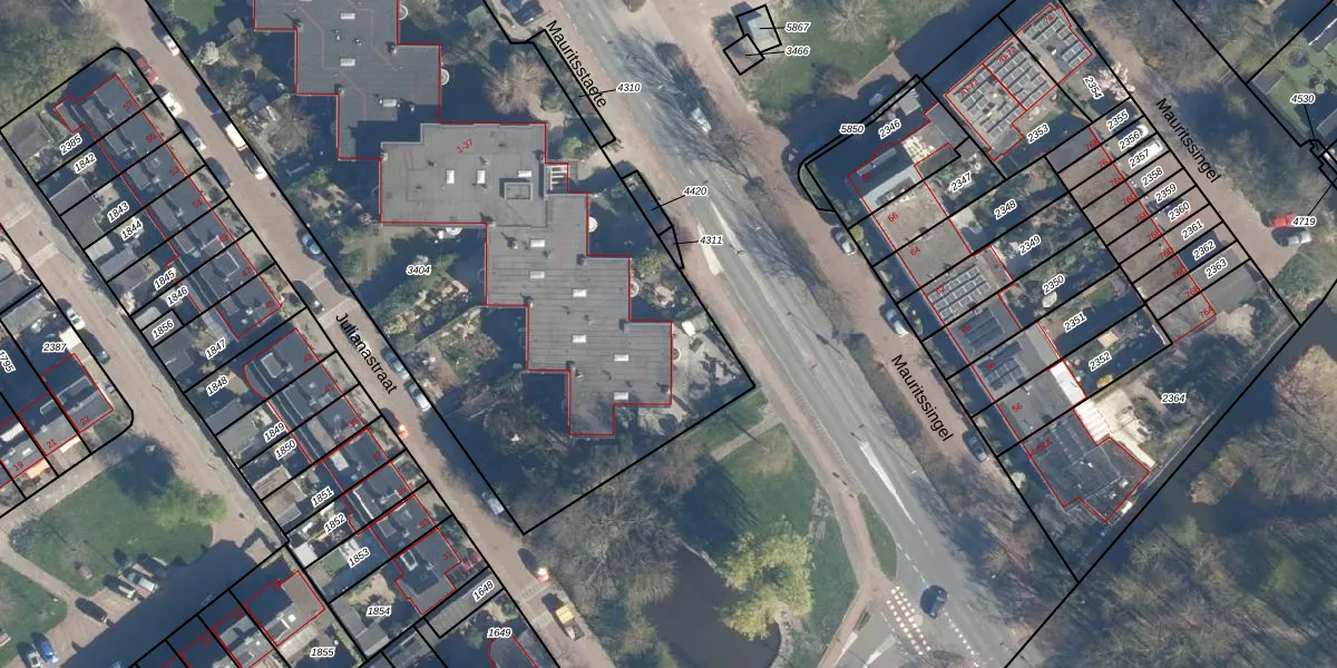 Het perceel waarop Mauritsstaete 8 staat heeft een oppervlakte van 4628 m². Dit is een zeer groot perceel. De perceeloppervlakte wordt geregistreerd door het Kadaster. Gedetailleerde informatie over de maten van dit perceel kunt u vinden in het rapport Kadastrale kaart met maatvoering van Mauritsstaete 8.