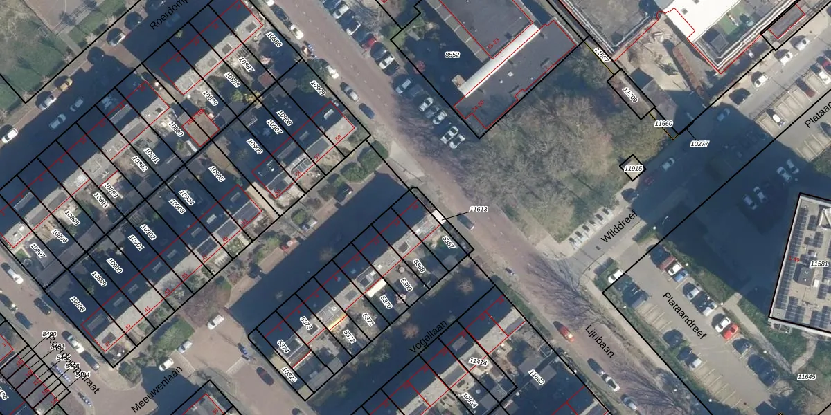 Gebruik de zoekbalk of klik op een perceel voor informatie over de adressen binnen dit perceel.