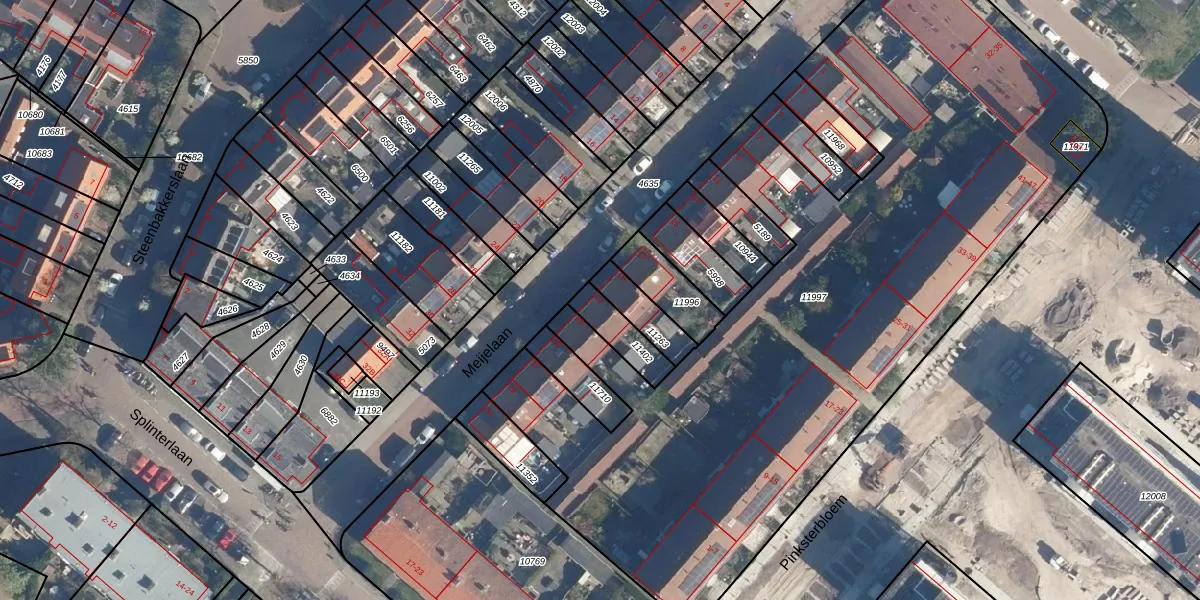 Gebruik de zoekbalk of klik op een perceel voor informatie over de adressen binnen dit perceel.
