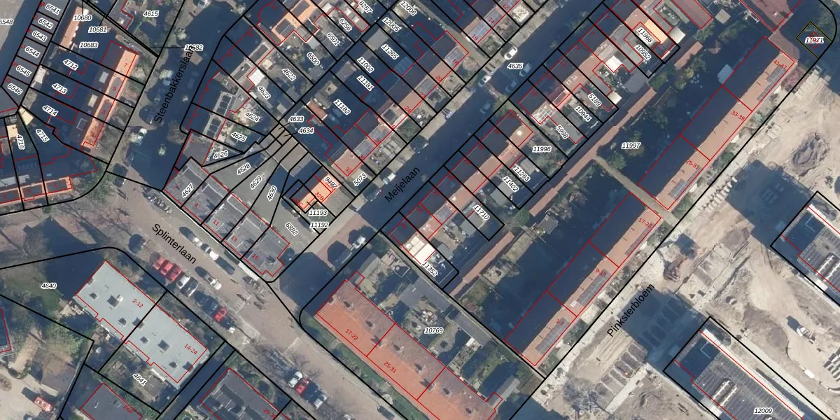 Het perceel waarop Meijelaan 29 staat heeft een oppervlakte van 4319 m². Dit is een zeer groot perceel. De perceeloppervlakte wordt geregistreerd door het Kadaster. Gedetailleerde informatie over de maten van dit perceel kunt u vinden in het rapport Kadastrale kaart met maatvoering van Meijelaan 29.
