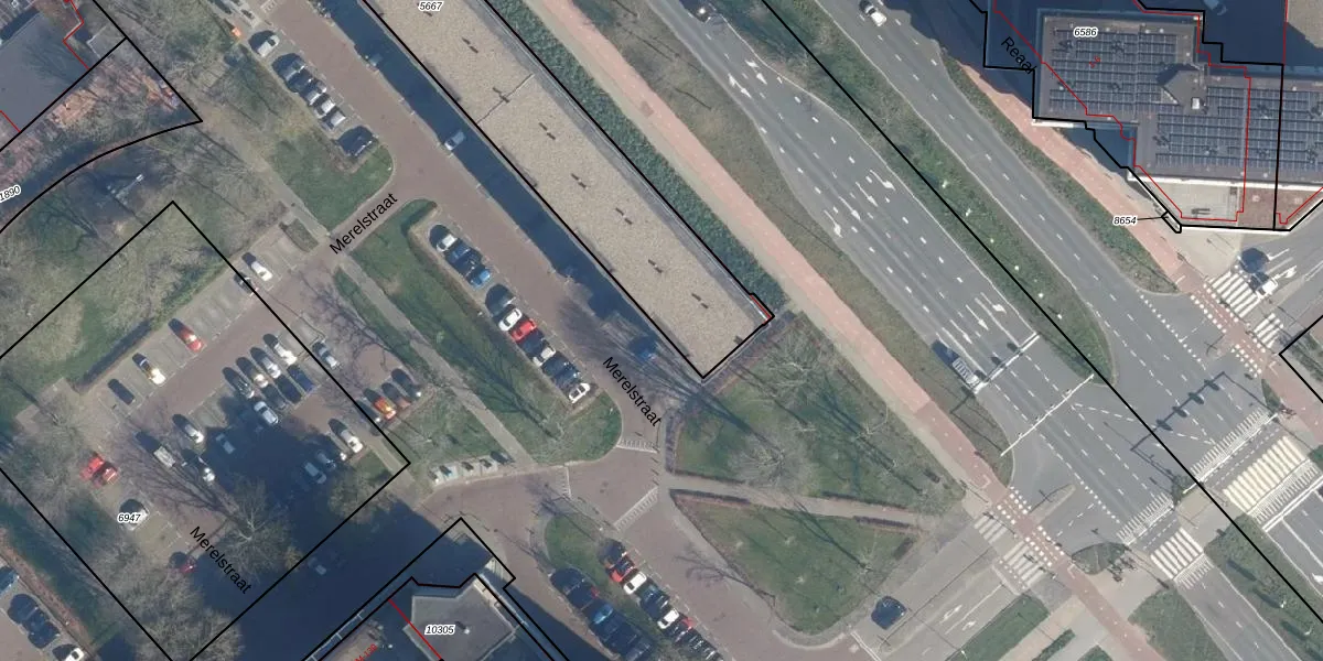 Het perceel waarop Merelstraat 1-A staat heeft een oppervlakte van 1945 m². Dit is een zeer groot perceel. De perceeloppervlakte wordt geregistreerd door het Kadaster. Gedetailleerde informatie over de maten van dit perceel kunt u vinden in het rapport Kadastrale kaart met maatvoering van Merelstraat 1-A.