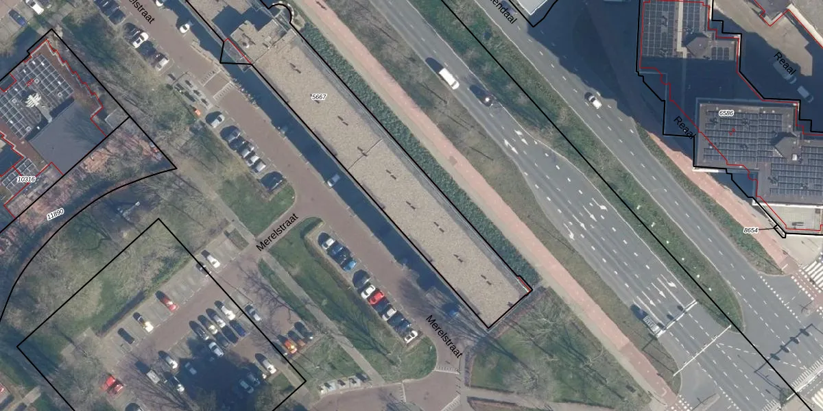 Merelstraat 108 is gelegen op kadastraal perceel LDD00A5667. Deze kadastrale aanduiding is uniek en wordt gebruikt door het Kadaster om eigendomsrechten en andere zakelijke rechten vast te leggen. Het perceel maakt onderdeel uit van de kadastrale gemeente Leiderdorp.