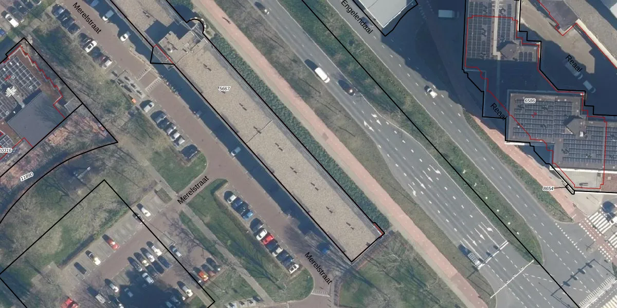 Het perceel waarop Merelstraat 12 staat heeft een oppervlakte van 1945 m². Dit is een zeer groot perceel. De perceeloppervlakte wordt geregistreerd door het Kadaster. Gedetailleerde informatie over de maten van dit perceel kunt u vinden in het rapport Kadastrale kaart met maatvoering van Merelstraat 12.