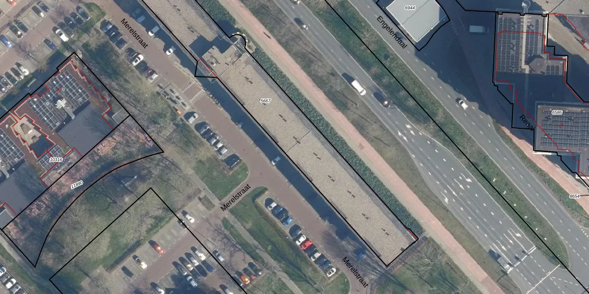 Het perceel waarop Merelstraat 136 staat heeft een oppervlakte van 1945 m². Dit is een zeer groot perceel. De perceeloppervlakte wordt geregistreerd door het Kadaster. Gedetailleerde informatie over de maten van dit perceel kunt u vinden in het rapport Kadastrale kaart met maatvoering van Merelstraat 136.