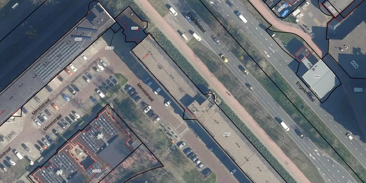 Het perceel waarop Merelstraat 152 staat heeft een oppervlakte van 1945 m². Dit is een zeer groot perceel. De perceeloppervlakte wordt geregistreerd door het Kadaster. Gedetailleerde informatie over de maten van dit perceel kunt u vinden in het rapport Kadastrale kaart met maatvoering van Merelstraat 152.