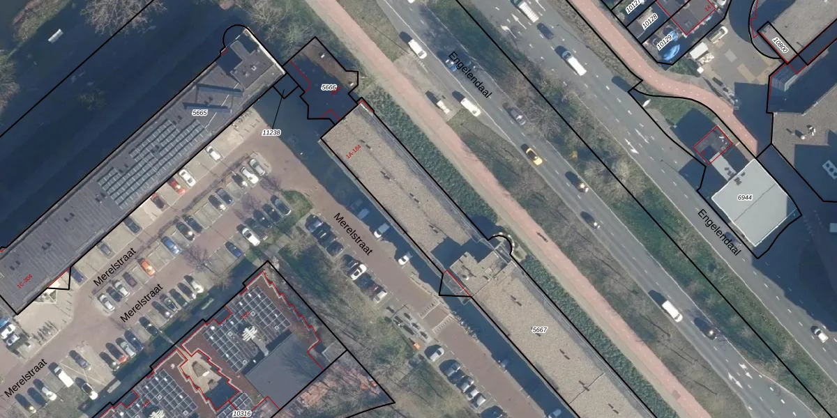 Merelstraat 154 is gelegen op kadastraal perceel LDD00A5667. Deze kadastrale aanduiding is uniek en wordt gebruikt door het Kadaster om eigendomsrechten en andere zakelijke rechten vast te leggen. Het perceel maakt onderdeel uit van de kadastrale gemeente Leiderdorp.