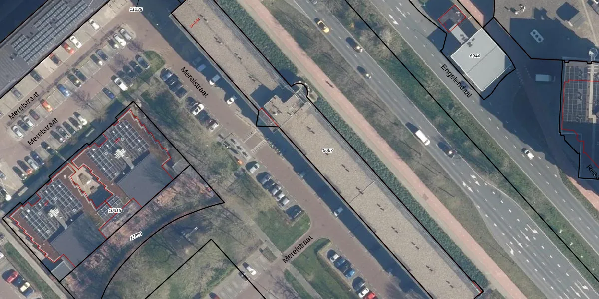Het perceel waarop Merelstraat 17-A staat heeft een oppervlakte van 1945 m². Dit is een zeer groot perceel. De perceeloppervlakte wordt geregistreerd door het Kadaster. Gedetailleerde informatie over de maten van dit perceel kunt u vinden in het rapport Kadastrale kaart met maatvoering van Merelstraat 17-A.