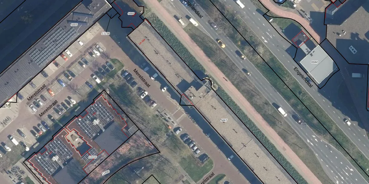 Het perceel waarop Merelstraat 174 staat heeft een oppervlakte van 1945 m². Dit is een zeer groot perceel. De perceeloppervlakte wordt geregistreerd door het Kadaster. Gedetailleerde informatie over de maten van dit perceel kunt u vinden in het rapport Kadastrale kaart met maatvoering van Merelstraat 174.