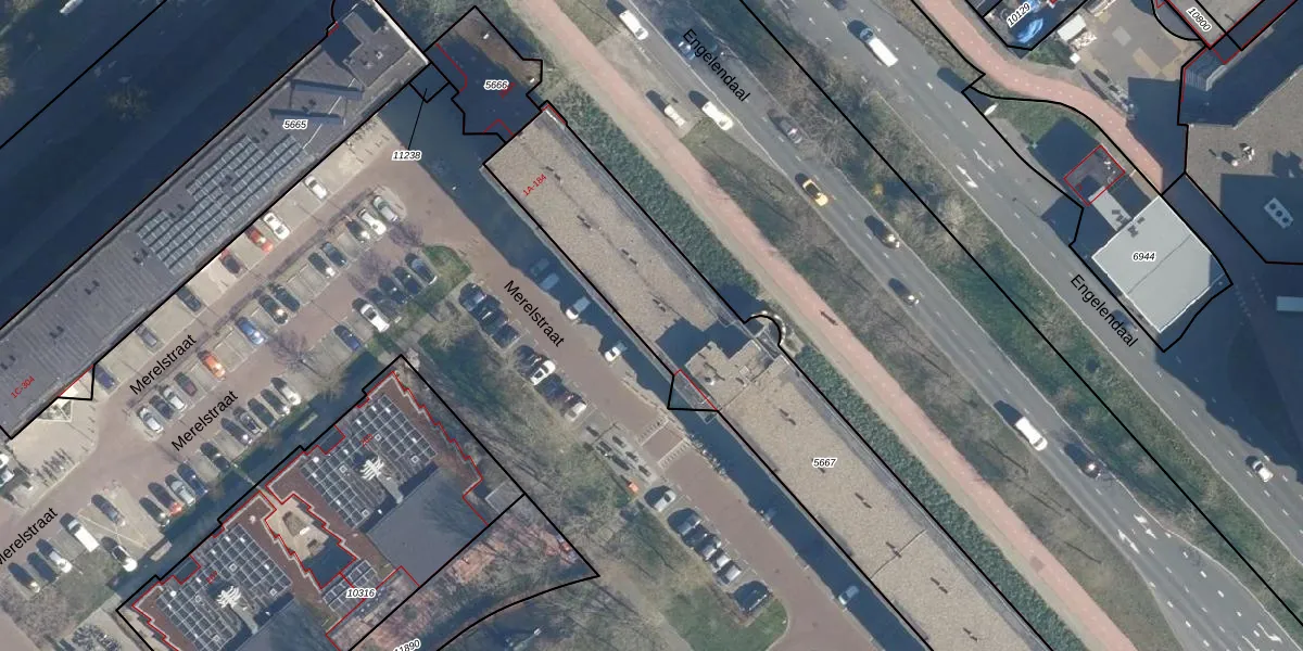 Het perceel waarop Merelstraat 176 staat heeft een oppervlakte van 1945 m². Dit is een zeer groot perceel. De perceeloppervlakte wordt geregistreerd door het Kadaster. Gedetailleerde informatie over de maten van dit perceel kunt u vinden in het rapport Kadastrale kaart met maatvoering van Merelstraat 176.