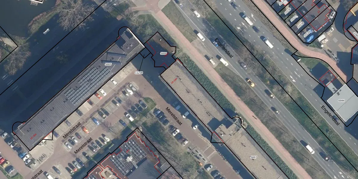 Het perceel waarop Merelstraat 182 staat heeft een oppervlakte van 1945 m². Dit is een zeer groot perceel. De perceeloppervlakte wordt geregistreerd door het Kadaster. Gedetailleerde informatie over de maten van dit perceel kunt u vinden in het rapport Kadastrale kaart met maatvoering van Merelstraat 182.