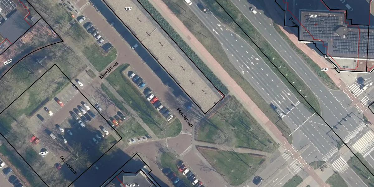 Het perceel waarop Merelstraat 2-A staat heeft een oppervlakte van 1945 m². Dit is een zeer groot perceel. De perceeloppervlakte wordt geregistreerd door het Kadaster. Gedetailleerde informatie over de maten van dit perceel kunt u vinden in het rapport Kadastrale kaart met maatvoering van Merelstraat 2-A.