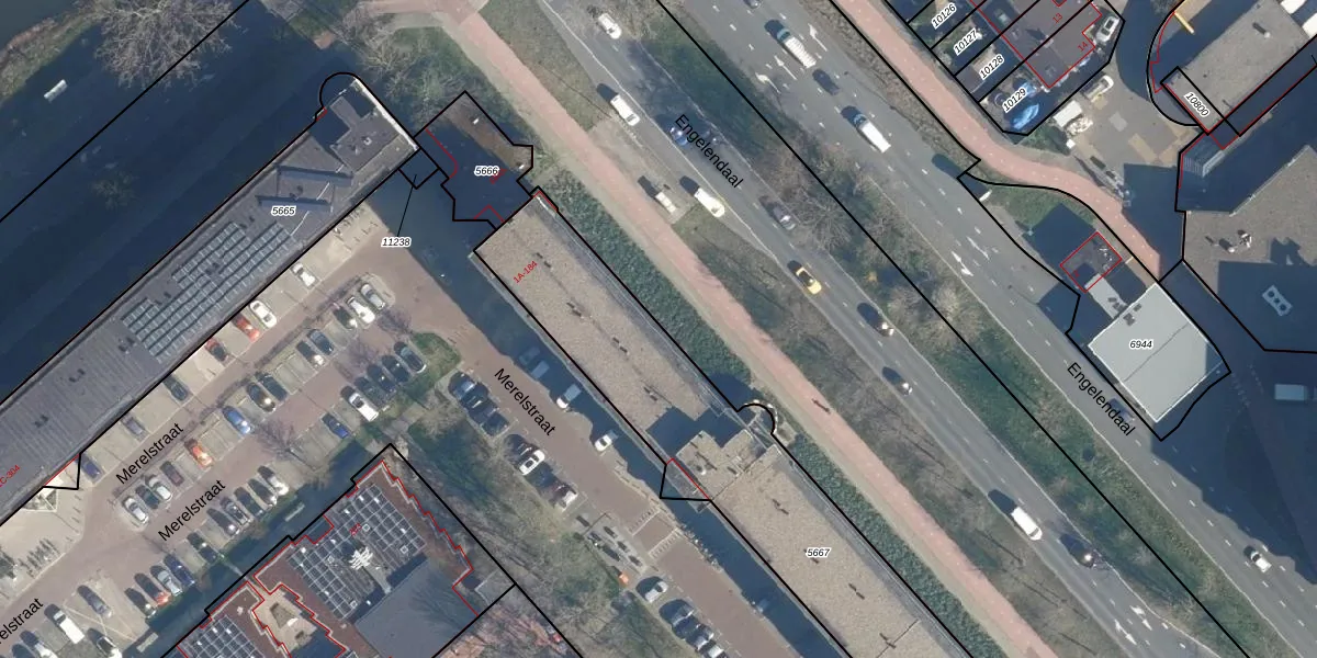 Het perceel waarop Merelstraat 26 staat heeft een oppervlakte van 1945 m². Dit is een zeer groot perceel. De perceeloppervlakte wordt geregistreerd door het Kadaster. Gedetailleerde informatie over de maten van dit perceel kunt u vinden in het rapport Kadastrale kaart met maatvoering van Merelstraat 26.
