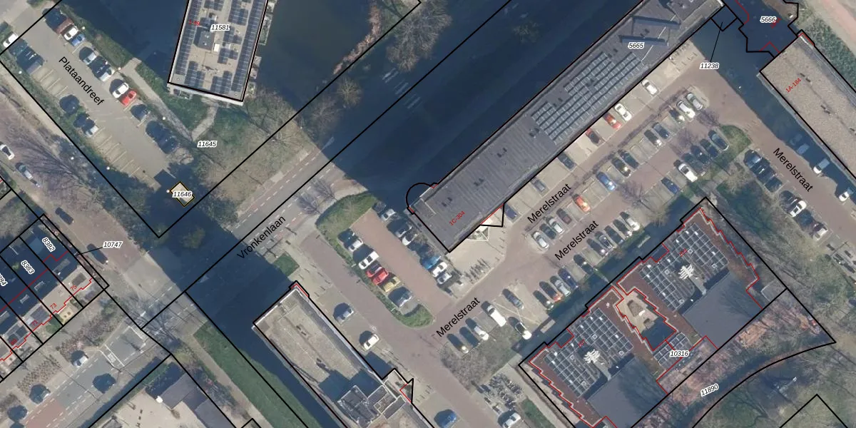 Het perceel waarop het adres ligt is LDD00-A-5665. De afkorting 'LDD00' staat voor kadastrale gemeente Leiderdorp. De gemiddelde perceelgrootte in Leiderdorp is 1289,87 m². Dit perceel is kleiner: de perceeloppervlakte bedraagt 1250 m². Het grootste perceel in de kadastrale gemeente is 43,4 ha. Het kleinste perceel heeft een oppervlakte van 0 m². Op het perceel zijn 71 adressen aanwezig. De laatste wijziging in het de Basisregistratie Kadaster (BRK) was op 21-11-2014.