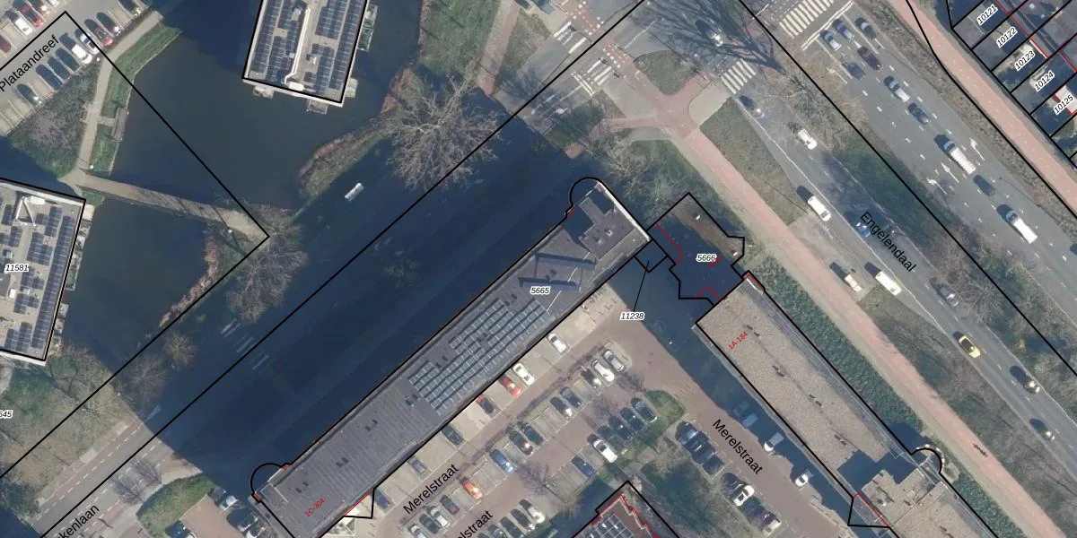 Het perceel waarop het adres ligt is LDD00-A-5665. De afkorting 'LDD00' staat voor kadastrale gemeente Leiderdorp. De gemiddelde perceelgrootte in Leiderdorp is 1289,87 m². Dit perceel is kleiner: de perceeloppervlakte bedraagt 1250 m². Het grootste perceel in de kadastrale gemeente is 43,4 ha. Het kleinste perceel heeft een oppervlakte van 0 m². Op het perceel zijn 71 adressen aanwezig. De laatste wijziging in het de Basisregistratie Kadaster (BRK) was op 21-11-2014.