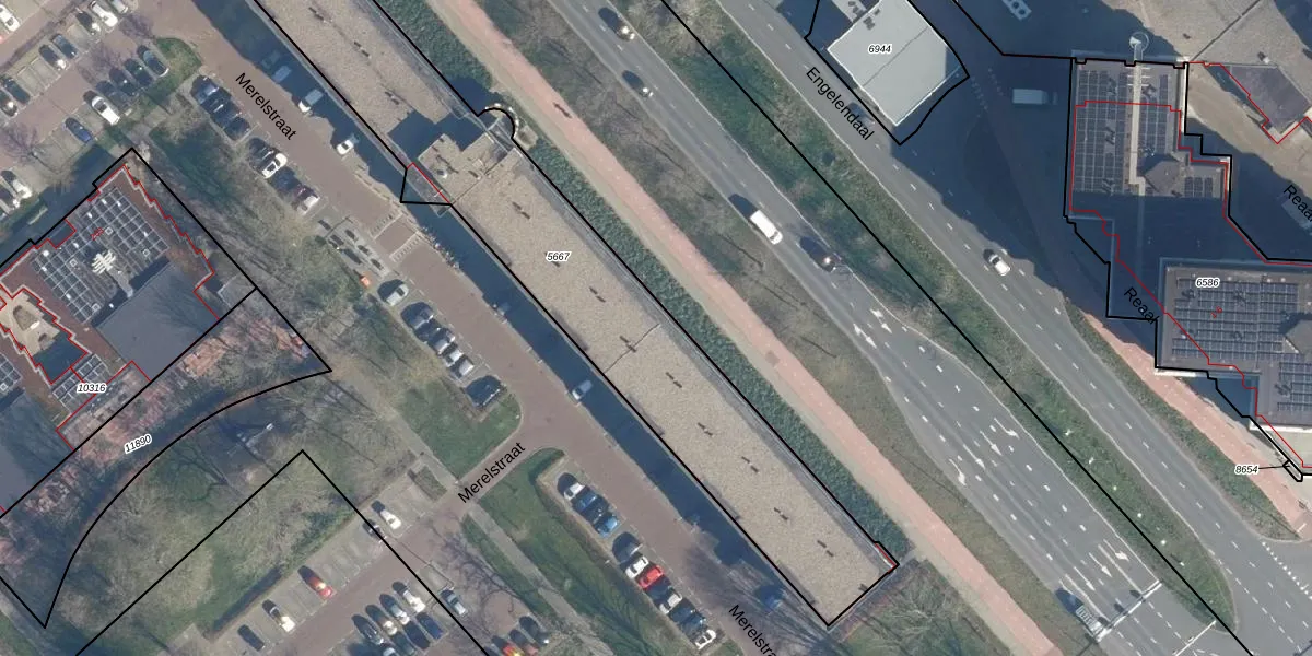 Het perceel waarop Merelstraat 40 staat heeft een oppervlakte van 1945 m². Dit is een zeer groot perceel. De perceeloppervlakte wordt geregistreerd door het Kadaster. Gedetailleerde informatie over de maten van dit perceel kunt u vinden in het rapport Kadastrale kaart met maatvoering van Merelstraat 40.