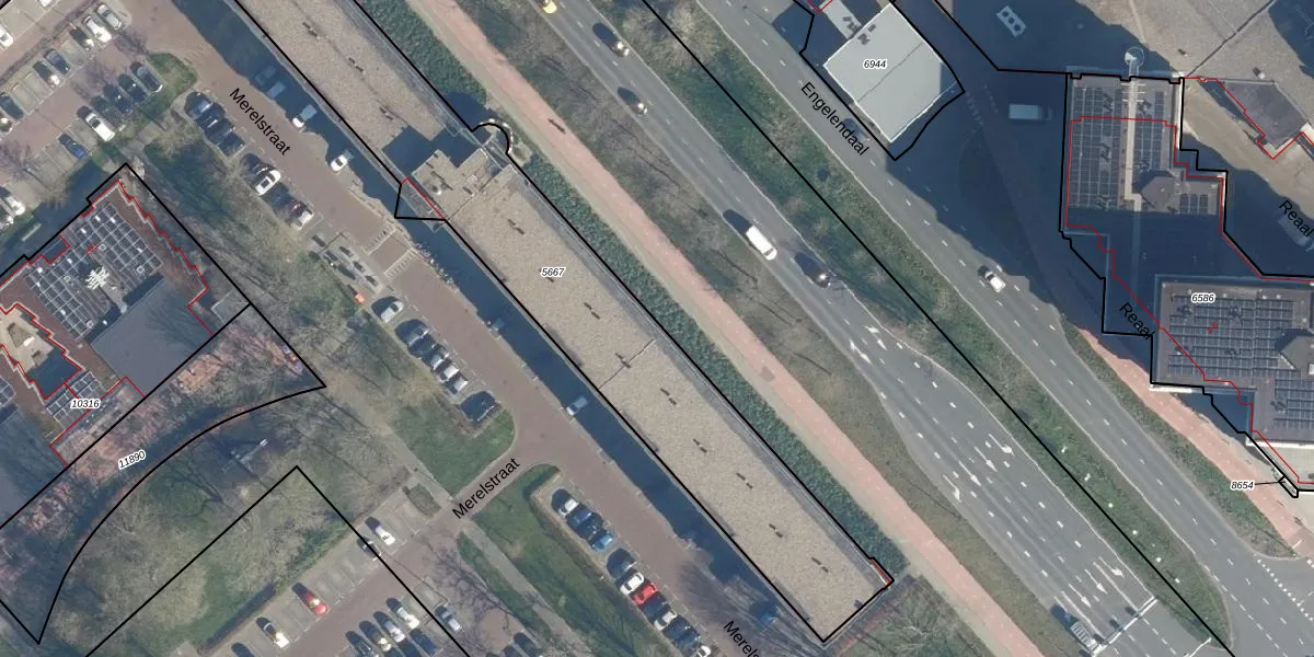 Het perceel waarop Merelstraat 8 staat heeft een oppervlakte van 1945 m². Dit is een zeer groot perceel. De perceeloppervlakte wordt geregistreerd door het Kadaster. Gedetailleerde informatie over de maten van dit perceel kunt u vinden in het rapport Kadastrale kaart met maatvoering van Merelstraat 8.