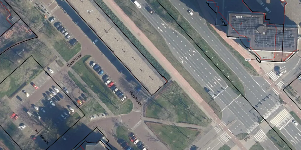 Merelstraat 82 is gelegen op kadastraal perceel LDD00A5667. Deze kadastrale aanduiding is uniek en wordt gebruikt door het Kadaster om eigendomsrechten en andere zakelijke rechten vast te leggen. Het perceel maakt onderdeel uit van de kadastrale gemeente Leiderdorp.