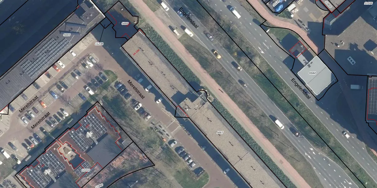 Het perceel waarop Merelstraat 86 staat heeft een oppervlakte van 1945 m². Dit is een zeer groot perceel. De perceeloppervlakte wordt geregistreerd door het Kadaster. Gedetailleerde informatie over de maten van dit perceel kunt u vinden in het rapport Kadastrale kaart met maatvoering van Merelstraat 86.