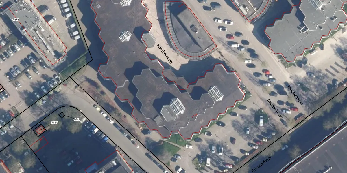 Het perceel waarop Meubelplein 1-B staat heeft een oppervlakte van 2,7 ha. Dit is een zeer groot perceel. De perceeloppervlakte wordt geregistreerd door het Kadaster. Gedetailleerde informatie over de maten van dit perceel kunt u vinden in het rapport Kadastrale kaart met maatvoering van Meubelplein 1-B.
