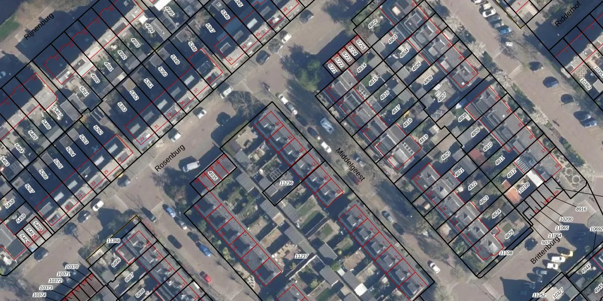 Middelgeest 19 is gelegen op kadastraal perceel LDD00A11237. Deze kadastrale aanduiding is uniek en wordt gebruikt door het Kadaster om eigendomsrechten en andere zakelijke rechten vast te leggen. Het perceel maakt onderdeel uit van de kadastrale gemeente Leiderdorp.