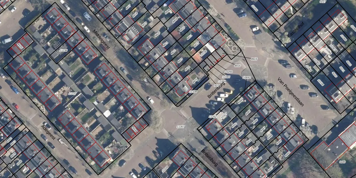 Het perceel waarop Middelgeest 2 staat heeft een oppervlakte van 202 m². Dit is een middelgroot perceel. De perceeloppervlakte wordt geregistreerd door het Kadaster. Gedetailleerde informatie over de maten van dit perceel kunt u vinden in het rapport Kadastrale kaart met maatvoering van Middelgeest 2.