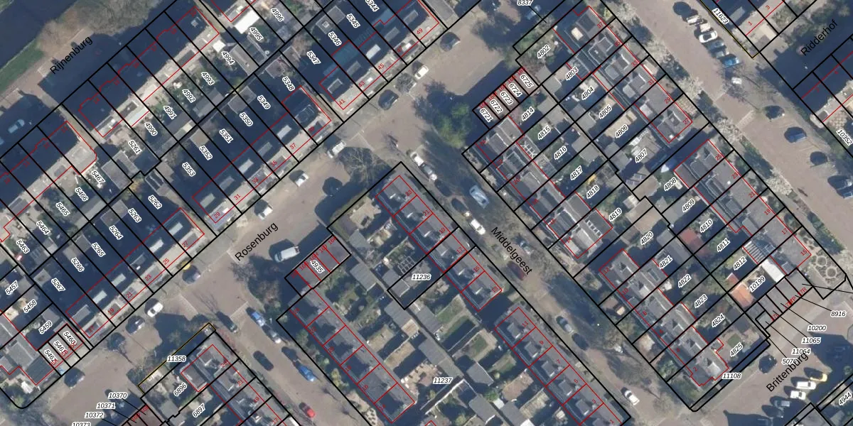 Middelgeest 21 is gelegen op kadastraal perceel LDD00A11237. Deze kadastrale aanduiding is uniek en wordt gebruikt door het Kadaster om eigendomsrechten en andere zakelijke rechten vast te leggen. Het perceel maakt onderdeel uit van de kadastrale gemeente Leiderdorp.