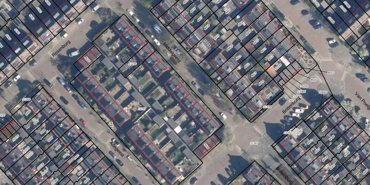 Middelgeest 9 is gelegen op kadastraal perceel LDD00A11237. Deze kadastrale aanduiding is uniek en wordt gebruikt door het Kadaster om eigendomsrechten en andere zakelijke rechten vast te leggen. Het perceel maakt onderdeel uit van de kadastrale gemeente Leiderdorp.