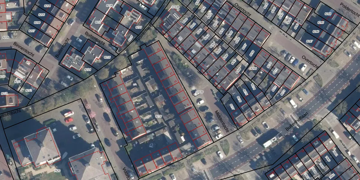 Middentocht 13 is gelegen op kadastraal perceel LDD00A8278. Deze kadastrale aanduiding is uniek en wordt gebruikt door het Kadaster om eigendomsrechten en andere zakelijke rechten vast te leggen. Het perceel maakt onderdeel uit van de kadastrale gemeente Leiderdorp.