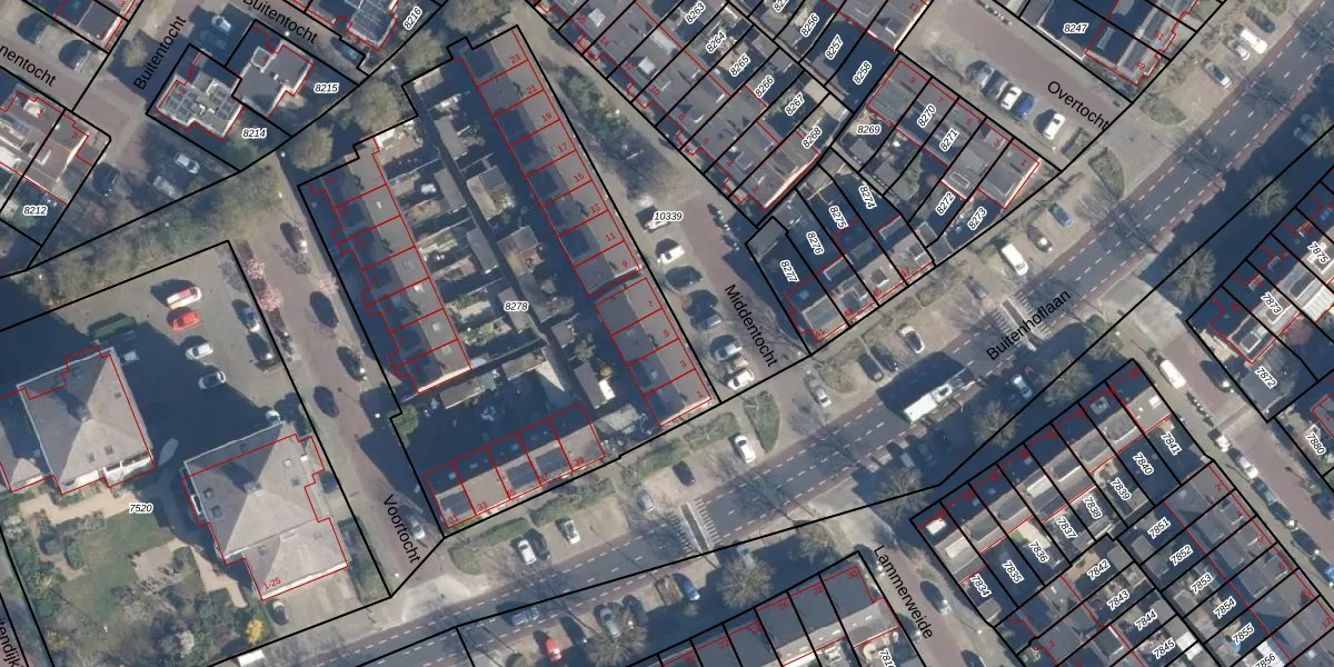 Middentocht 5 is gelegen op kadastraal perceel LDD00A8278. Deze kadastrale aanduiding is uniek en wordt gebruikt door het Kadaster om eigendomsrechten en andere zakelijke rechten vast te leggen. Het perceel maakt onderdeel uit van de kadastrale gemeente Leiderdorp.