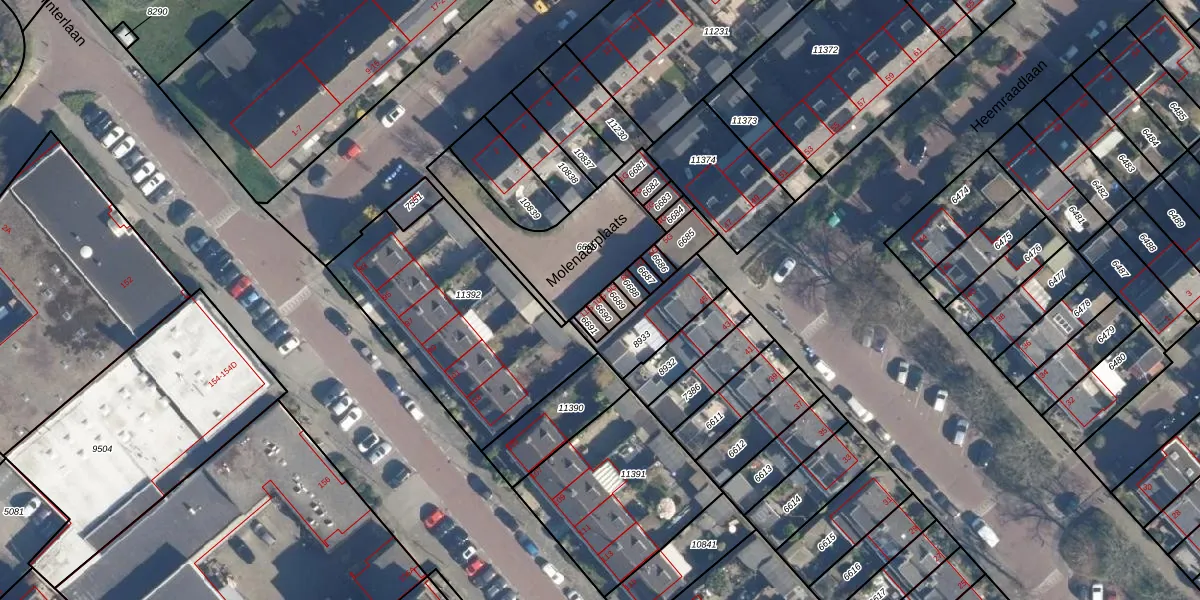 Gebruik de zoekbalk of klik op een perceel voor informatie over de adressen binnen dit perceel.