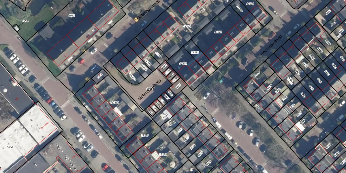 Gebruik de zoekbalk of klik op een perceel voor informatie over de adressen binnen dit perceel.