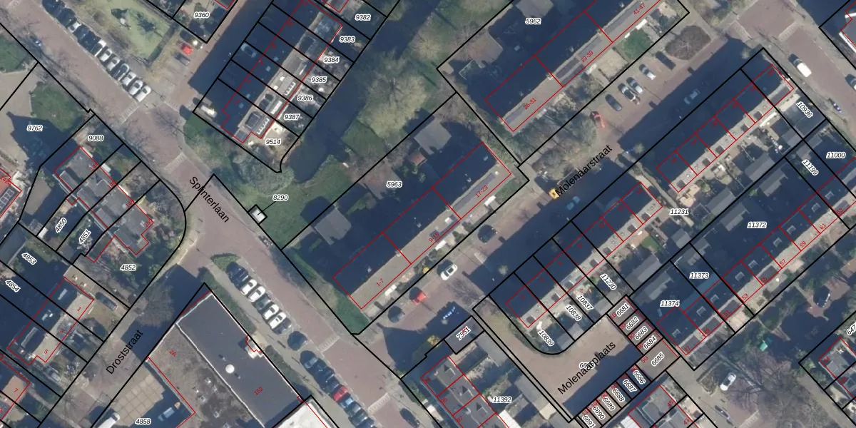 Molenaarstraat 15 is gelegen op kadastraal perceel LDD00A5963. Deze kadastrale aanduiding is uniek en wordt gebruikt door het Kadaster om eigendomsrechten en andere zakelijke rechten vast te leggen. Het perceel maakt onderdeel uit van de kadastrale gemeente Leiderdorp.