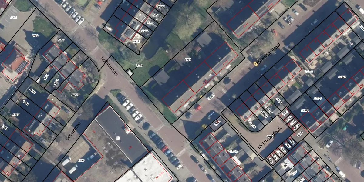 Molenaarstraat 7 is gelegen op kadastraal perceel LDD00A5963. Deze kadastrale aanduiding is uniek en wordt gebruikt door het Kadaster om eigendomsrechten en andere zakelijke rechten vast te leggen. Het perceel maakt onderdeel uit van de kadastrale gemeente Leiderdorp.