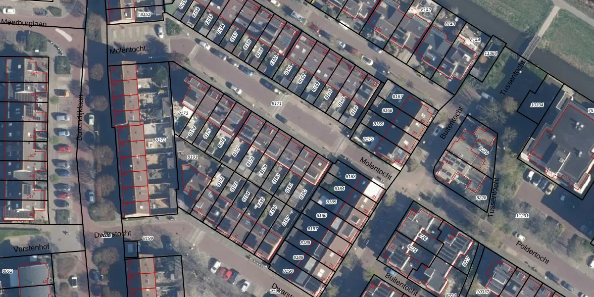 Molentocht 5 is gelegen op kadastraal perceel LDD00A8180. Deze kadastrale aanduiding is uniek en wordt gebruikt door het Kadaster om eigendomsrechten en andere zakelijke rechten vast te leggen. Het perceel maakt onderdeel uit van de kadastrale gemeente Leiderdorp.