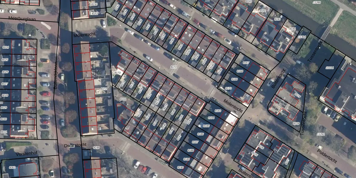 Gebruik de zoekbalk of klik op een perceel voor informatie over de adressen binnen dit perceel.
