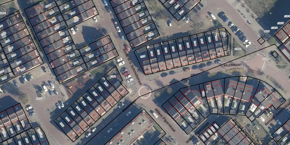 Muzenlaan 133 is gelegen op kadastraal perceel LDD00A7279. Deze kadastrale aanduiding is uniek en wordt gebruikt door het Kadaster om eigendomsrechten en andere zakelijke rechten vast te leggen. Het perceel maakt onderdeel uit van de kadastrale gemeente Leiderdorp.