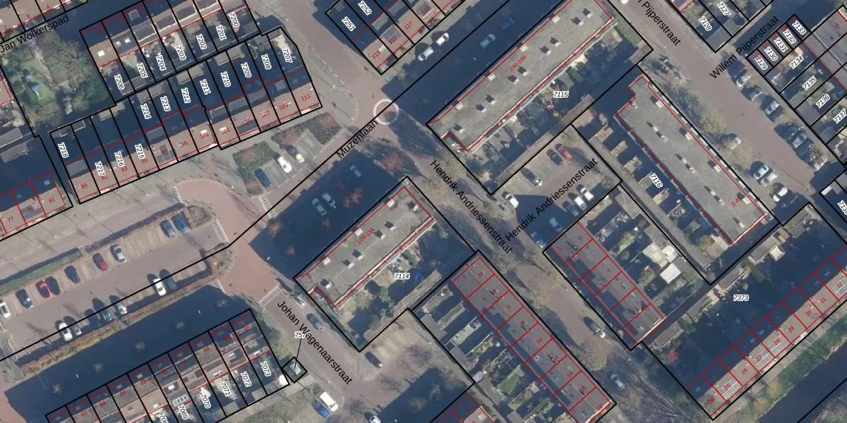 Muzenlaan 134 is gelegen op kadastraal perceel LDD00A7114. Deze kadastrale aanduiding is uniek en wordt gebruikt door het Kadaster om eigendomsrechten en andere zakelijke rechten vast te leggen. Het perceel maakt onderdeel uit van de kadastrale gemeente Leiderdorp.