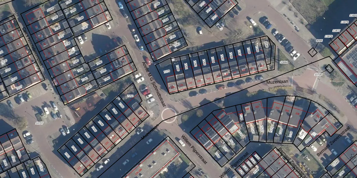 Gebruik de zoekbalk of klik op een perceel voor informatie over de adressen binnen dit perceel.