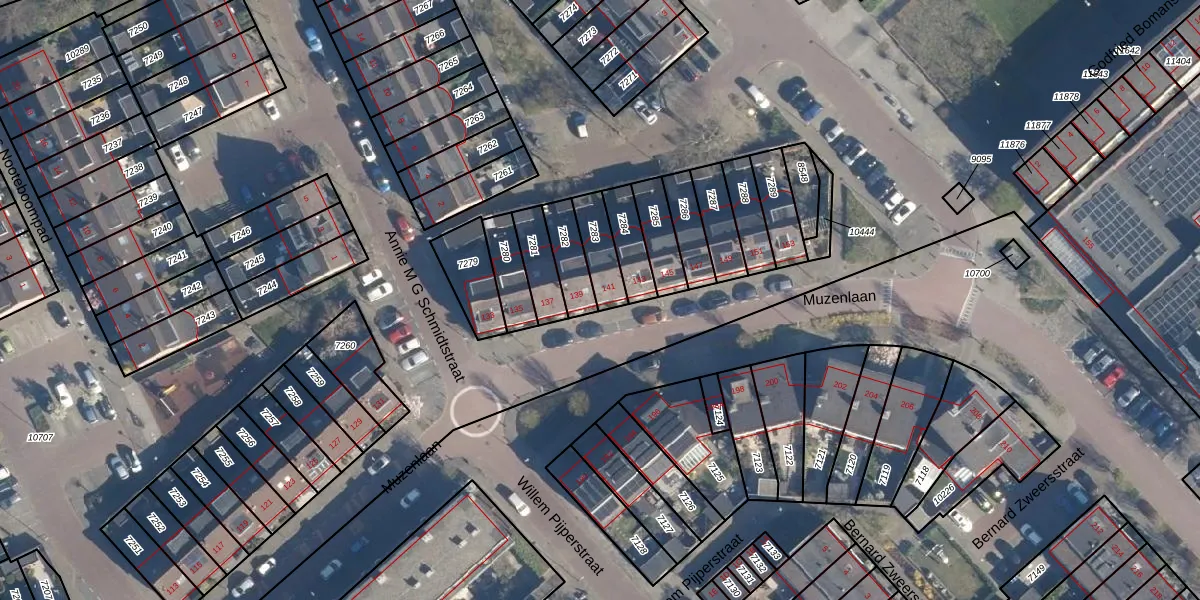 Het perceel waarop Muzenlaan 141 staat heeft een oppervlakte van 100 m². Dit is een middelgroot perceel. De perceeloppervlakte wordt geregistreerd door het Kadaster. Gedetailleerde informatie over de maten van dit perceel kunt u vinden in het rapport Kadastrale kaart met maatvoering van Muzenlaan 141.
