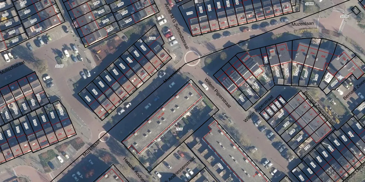 Het perceel waarop Muzenlaan 150 staat heeft een oppervlakte van 1187 m². Dit is een zeer groot perceel. De perceeloppervlakte wordt geregistreerd door het Kadaster. Gedetailleerde informatie over de maten van dit perceel kunt u vinden in het rapport Kadastrale kaart met maatvoering van Muzenlaan 150.