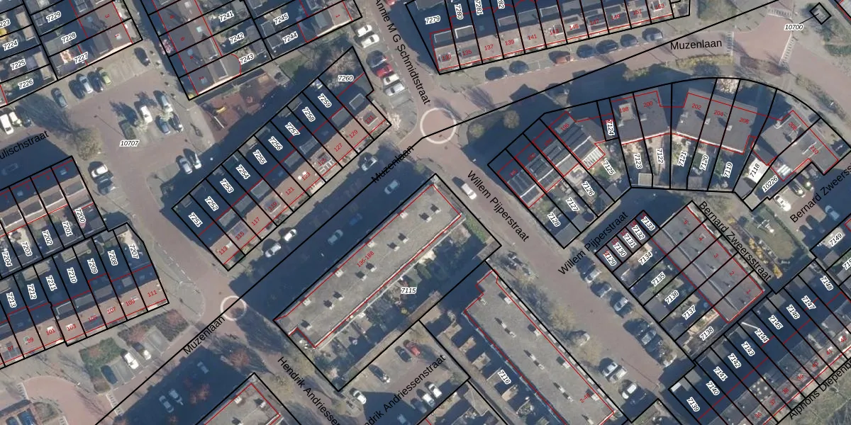 Het perceel waarop Muzenlaan 168 staat heeft een oppervlakte van 1187 m². Dit is een zeer groot perceel. De perceeloppervlakte wordt geregistreerd door het Kadaster. Gedetailleerde informatie over de maten van dit perceel kunt u vinden in het rapport Kadastrale kaart met maatvoering van Muzenlaan 168.