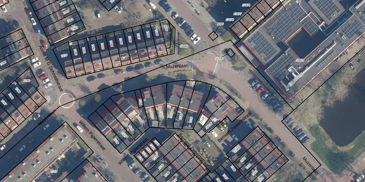 Het perceel waarop Muzenlaan 202 staat heeft een oppervlakte van 178 m². Dit is een middelgroot perceel. De perceeloppervlakte wordt geregistreerd door het Kadaster. Gedetailleerde informatie over de maten van dit perceel kunt u vinden in het rapport Kadastrale kaart met maatvoering van Muzenlaan 202.