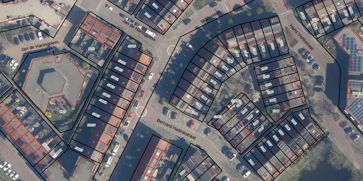 Gebruik de zoekbalk of klik op een perceel voor informatie over de adressen binnen dit perceel.