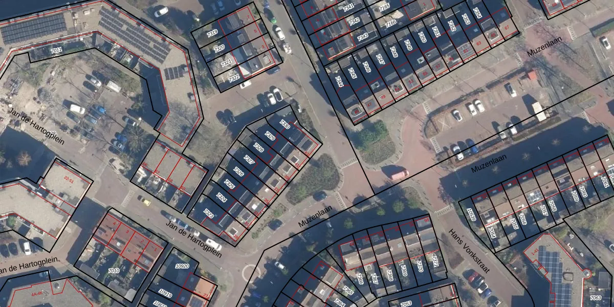 Muzenlaan 43 is gelegen op kadastraal perceel LDD00A7330. Deze kadastrale aanduiding is uniek en wordt gebruikt door het Kadaster om eigendomsrechten en andere zakelijke rechten vast te leggen. Het perceel maakt onderdeel uit van de kadastrale gemeente Leiderdorp.