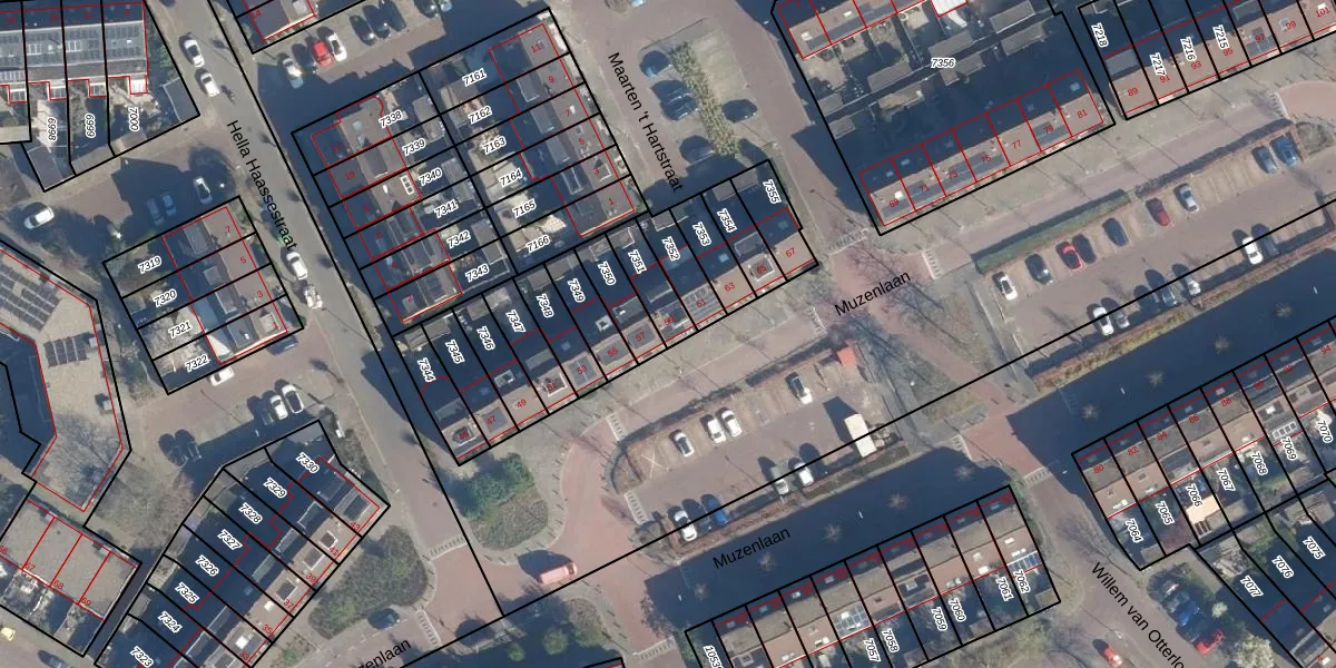 Het perceel waarop Muzenlaan 59 staat heeft een oppervlakte van 100 m². Dit is een middelgroot perceel. De perceeloppervlakte wordt geregistreerd door het Kadaster. Gedetailleerde informatie over de maten van dit perceel kunt u vinden in het rapport Kadastrale kaart met maatvoering van Muzenlaan 59.