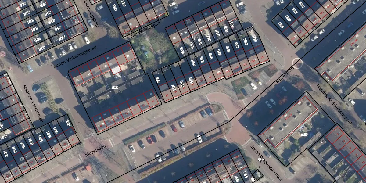 Gebruik de zoekbalk of klik op een perceel voor informatie over de adressen binnen dit perceel.