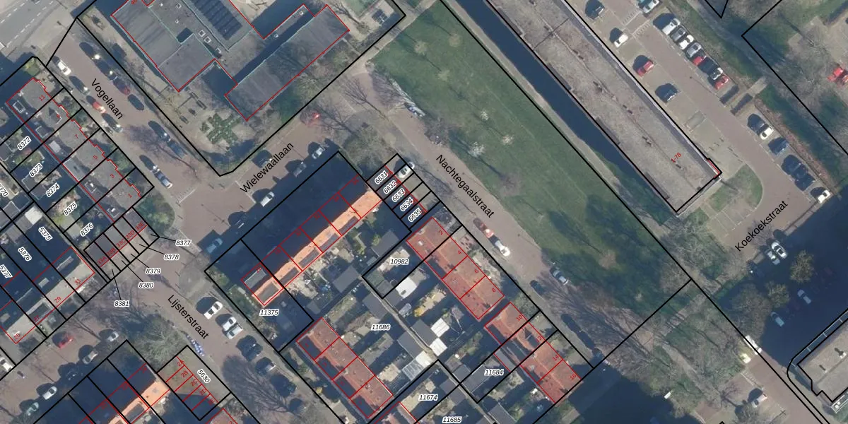 Gebruik de zoekbalk of klik op een perceel voor informatie over de adressen binnen dit perceel.