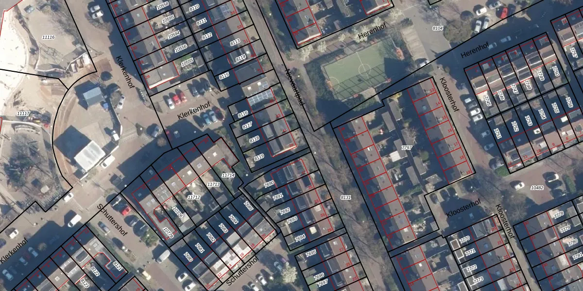 Gebruik de zoekbalk of klik op een perceel voor informatie over de adressen binnen dit perceel.